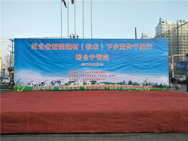 2017年12月7日,邢臺市泓升建材節能有限公司攜手建設廳于寧晉站一起舉行下鄉宣傳活動(dòng)!其宗旨:解百姓之憂(yōu),幫企業(yè)之難,讓新型建材在農村落地生根!